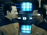 They find that an EM pulse of some kind corrupted nearly all the Vico's logs, including all the sensor data. As they get to work on what they can save, Geordi tells Data [at Data's behest] of being caught in a fire once, and notes that for a long time afterwards he wouldn't even let his parents out of earshot. Meanwhile, analysis of the Vico from the Enterprise sensors shows that any attack must have occurred inside the Black Cluster, probably with disruptors rather than phasers, and at very close range. It's possible, although unlikely-but when Geordi hears talk of a boarding party, he protests that based on available data, that is nearly impossible-which means Timothy's hiding behind a convenient lie. Troi suggests that Data spend more time with Timothy, since he already has Timothy's trust and can do the most to help him out of shock.